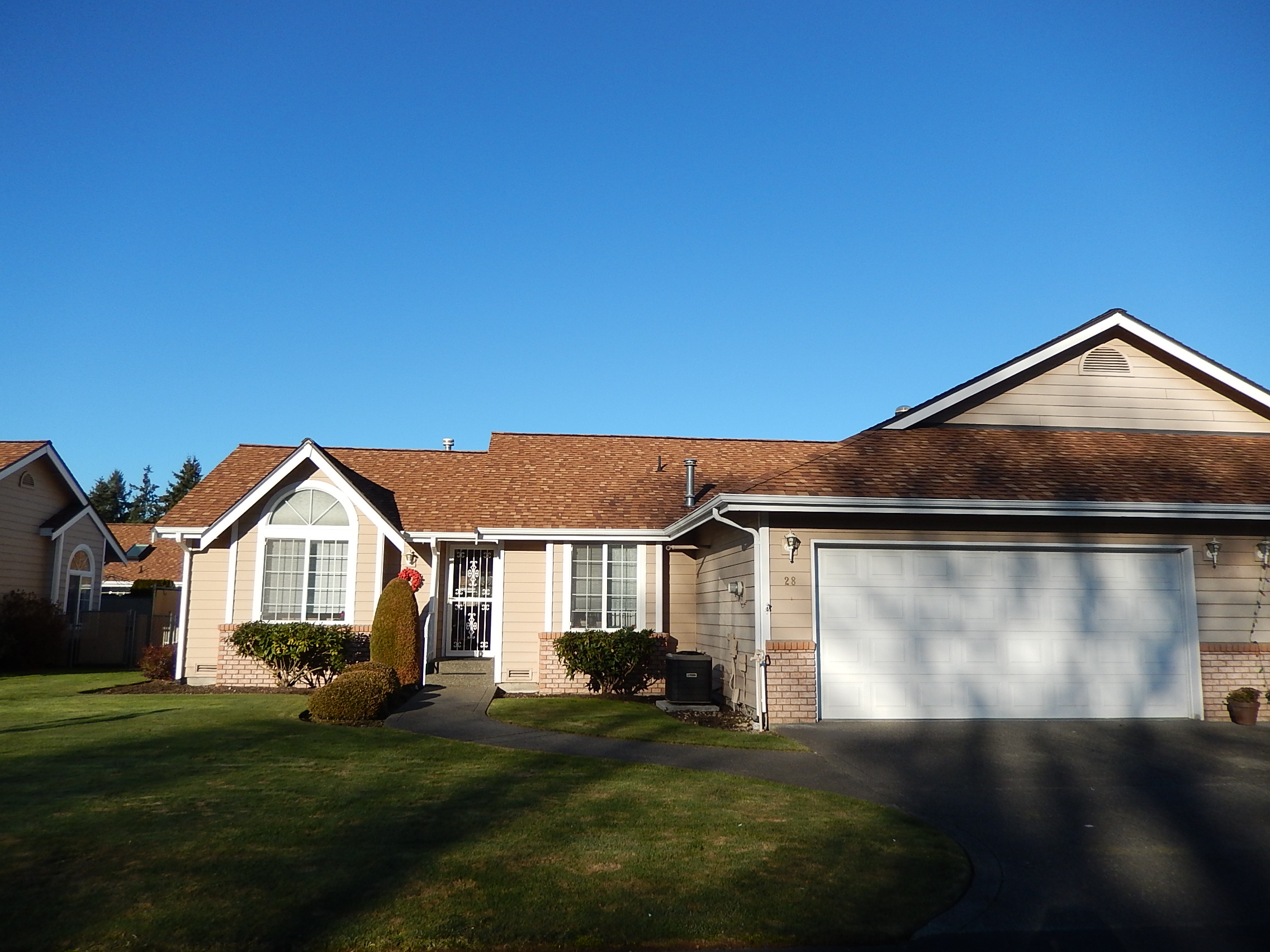 Absolutely Beautiful! You will love this unique 1-level home located in a desirable, small, secluded & secure community! Live the good life as the exterior & grounds are maintained by the HOA. Enjoy the cozy gas fireplace, vaulted ceilings, skylights, A/C, private & fully-fenced yard, spacious 5-piece master bath & walk-in closet. Well maintained with all newer furnace, water heater & appliances. Convenient den/office could be a 3rd bedrm. Light & bright kitchen; pull-out shelves in the pantry.