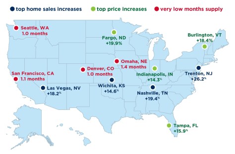 February home prices reached a new high as steady demand combined with record low inventory drove prices up, according to this month’s RE/MAX National Housing Report that surveys 53 metro areas.