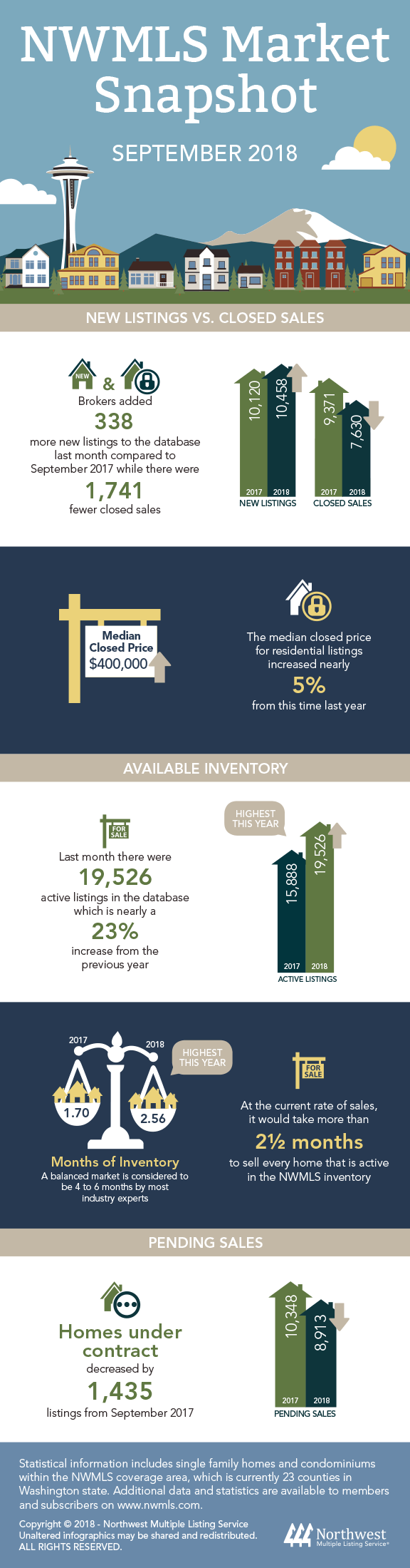 October 8, 2018 by Managing The Real Estate Details Washington State NWMLS Market Snapshot for September 2018 Balance is finally returning to the housing market as buyers welcome more choices and moderating prices. Share this: Share on Facebook (Opens in new window) Facebook Share on LinkedIn (Opens in new window) LinkedIn Share on X (Opens in new window) X Share on Pinterest (Opens in new window) Pinterest Share on Nextdoor (Opens in new window) Nextdoor Email a link to a friend (Opens in new window) Email Print (Opens in new window) Print Like Loading... Related