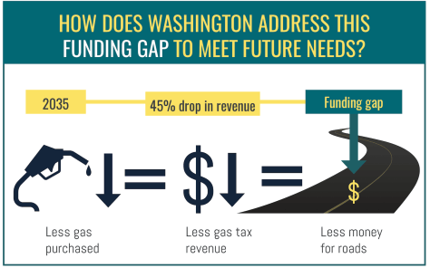 Did you know that the current gas tax of 49.4 cents per gallon is used to fund the state’s roads and bridges? As cars become increasingly more fuel efficient and as more electric vehicles are on the road, gas tax revenue used to support our roads and bridges will decrease more each year. To ensure stable, long-term funding, we need to change the way we pay for our roads.