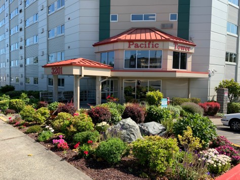 Enjoy stunning Tacoma and Commencement Bay views from your living, dining room and kitchen! This beautiful high-rise condo includes a common garage space, as well as an individual garage with lots of storage. You’ll love the modern kitchen with granite counters, stainless steel appliances & newer tile floors. Features include a built-in desk/work area, closet organizers, closet with wine rack & a spacious utility rm. You’ll also enjoy air conditioning, Mt Rainier views from a bedroom & instant hot water. Pacific Tower is a secure building with a welcoming lobby, elevators, a meeting room w/ kitchen & bathroom, exercise room, guest suite available for rent & storage for each unit. Don’t miss this one-of-a-kind condo with breathtaking views!