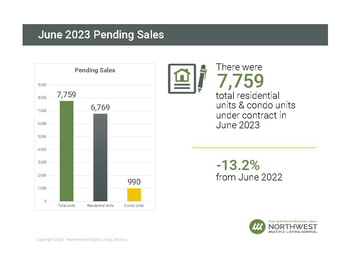 On a brighter note for buyers, NWMLS members added 9,481 new listings to inventory during June. That’s the highest total since August 2022 when brokers replenished inventory with 9,914 new listings.