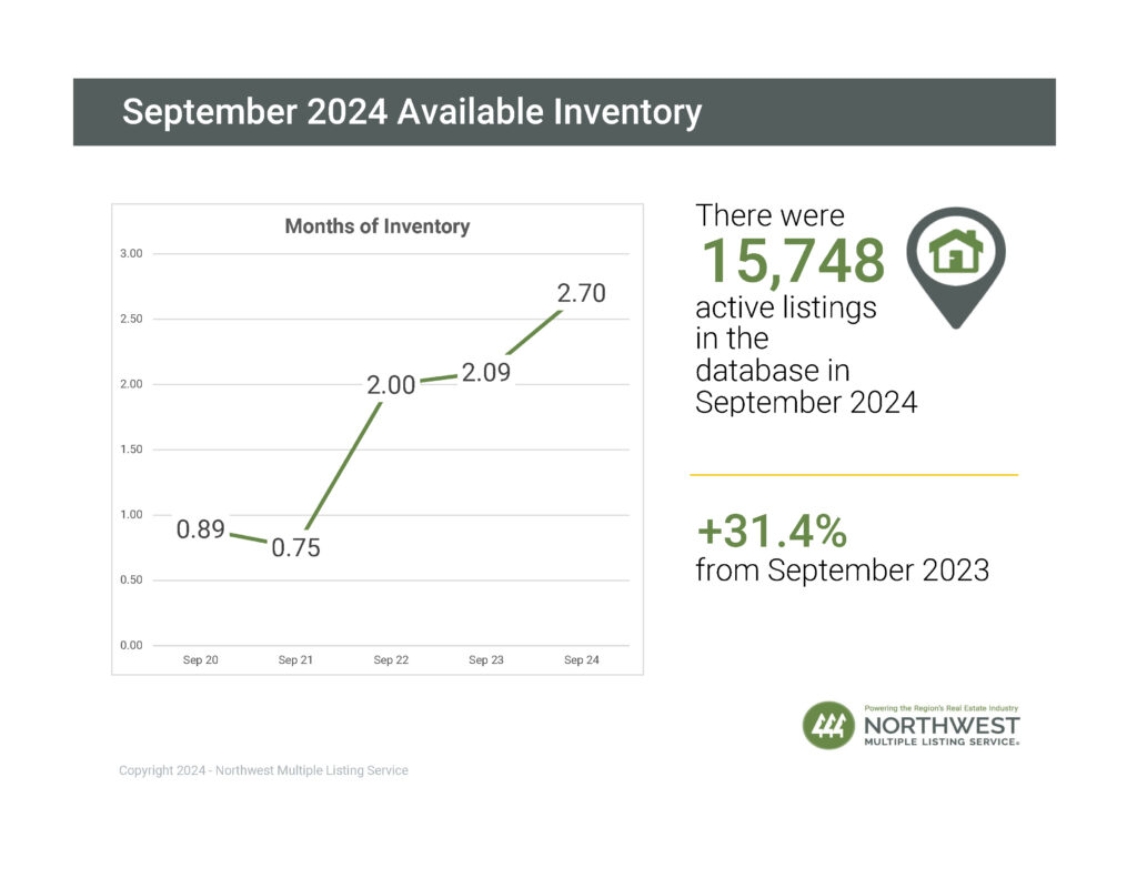 - The six counties with the highest increases in active inventory were Kittitas (+76.7%), Snohomish (+65.3%), Grant (+54.2%), King (+52%), Whatcom (+48.2%) and Chelan (+42.7%).