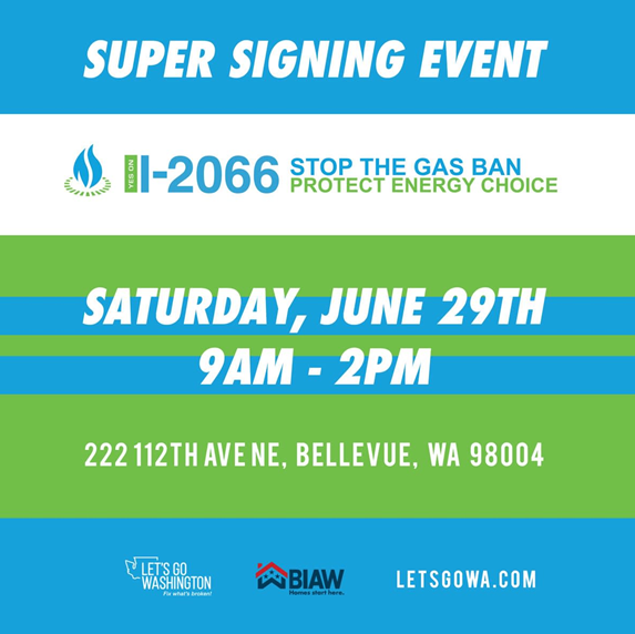 Visit this website for details about the initiative, a super signing event this weekend, and other local signing locations: https://letsgowashington.com/i-2066-stop-the-gas-ban-protect-energy-choice/